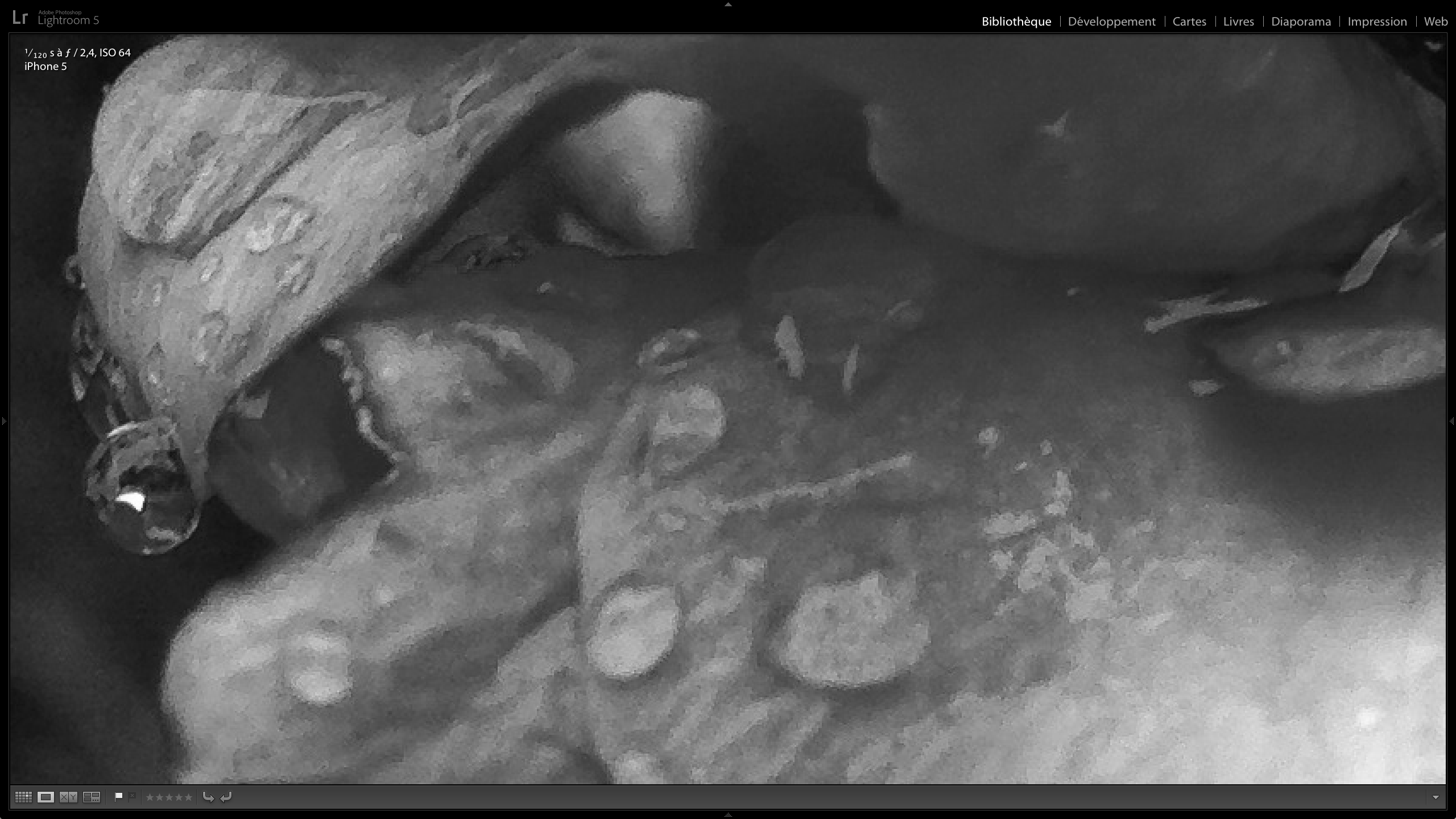 Je suis toujours plongé dans Lightroom — l’occasion de regarder quelques-unes de mes photos prises à l’iPhone comme on n’est pas censé le faire : Peindre en N&B, avec des pixels made in iPhone.